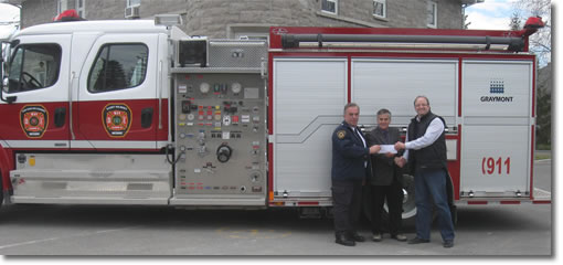 June 1, 2010, Graymont (Portneuf) — Graymont Portneuf, located in St-Marc-des-Carrières’s City, Quebec, has committed to contribute $20,000 over four years to the city, towards the purchase of a new fire truck.